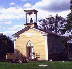 | The big news in New Diggings is that they are restoring the 1844 church, St. Augustine. I spoke with conservator Ron Koenig and he said the new coat of paint is only the second since the church was built. He said the priest who built the church, Samuel Mazzuchelli, is up for canonization and that one of his purported miracles is that he built churches that last. Ron supplied the photographs at left. |