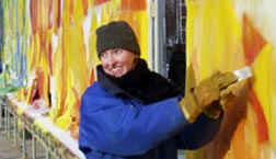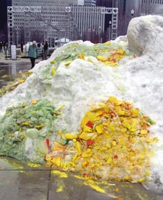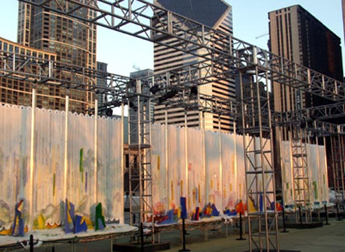 | In February of '08 the City of Chicago sponsored an art exhibit in Millenium Park. The art, a colorful ice wall measuring 95 feet long and 12 feet tall, was made by Canadian artist Gordon Halloran. The wall involved a lot of technoligy, refrigeration pipes, acrylic paint, and ice molds. |
