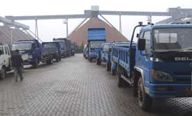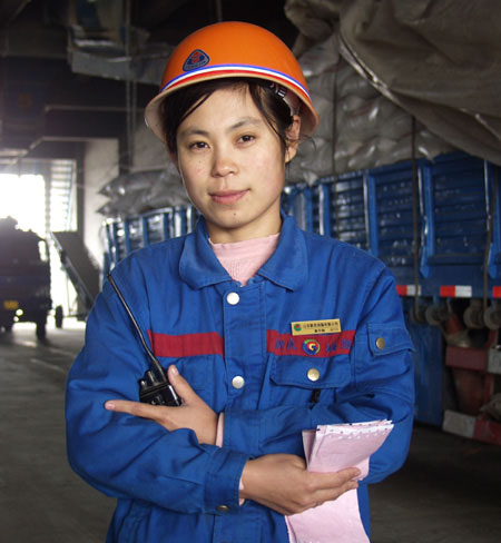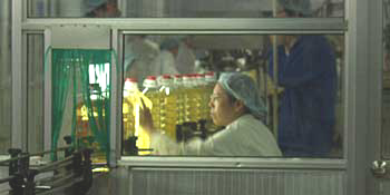 | On Day 2 in China we went to the the  Shandong  Xin Liang Oil Company in   Rizhao. The company produces soy cooking oil.  The soy is imported from the United States.   Ge Ping Juan is a manager in the warehouse area of the plant. Wang Gui Li, Yan Zhen and Li Chian Li work in the Training Department.  |